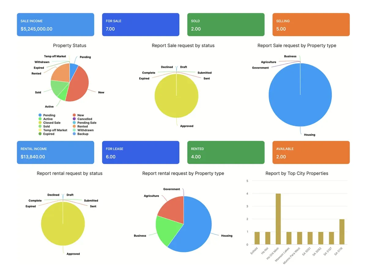 Relatórios Detalhados: Vendas, despesas, conversão de leads, tickets e artigos da base de conhecimento.
