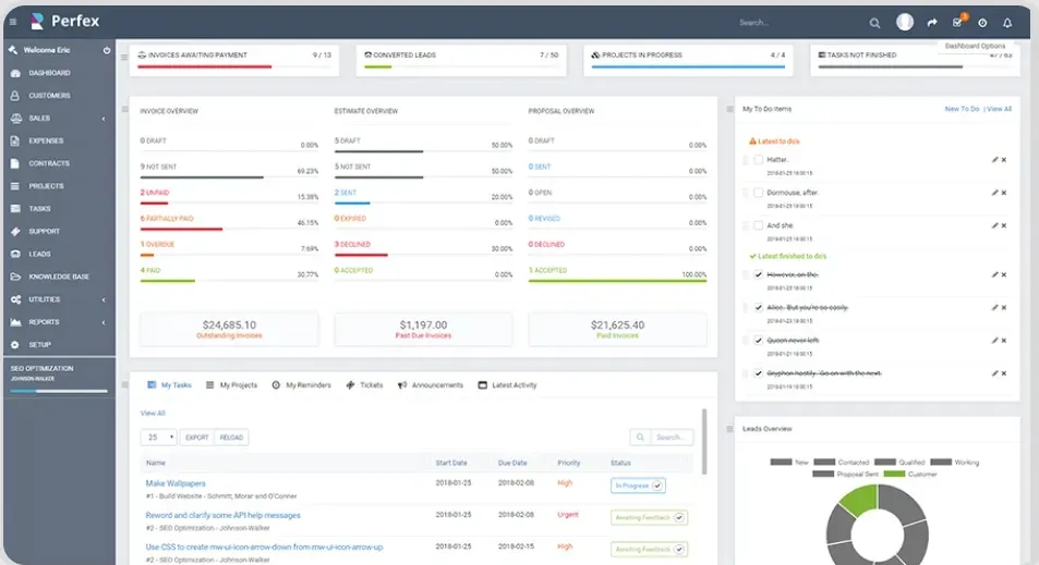 O Perfex CRM 3.4.0 com Módulos de RH permite gerenciar colaboradores, cargos, desempenho e comunicações internas