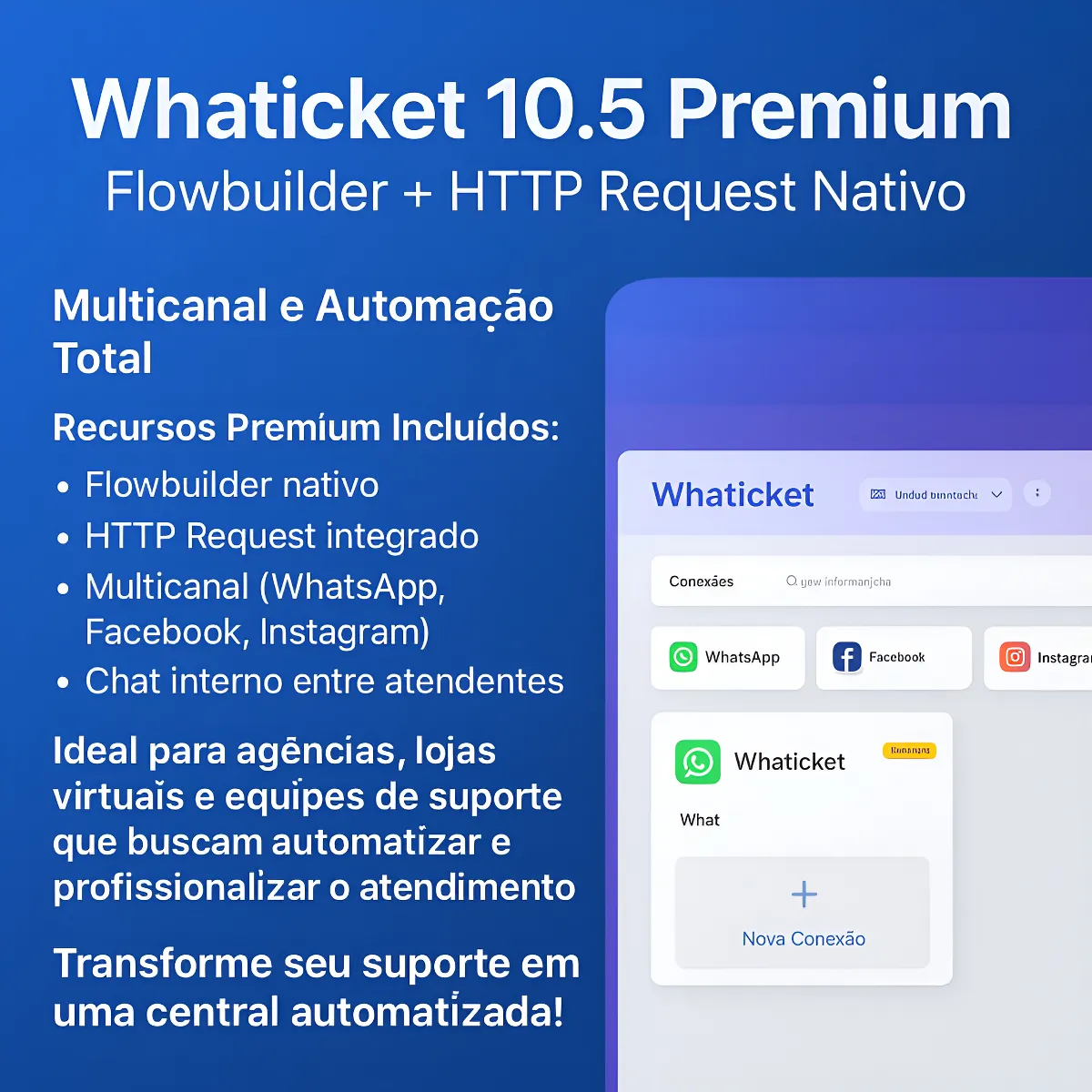 Ver ProdutoPotencialize o atendimento da sua empresa com o Whaticket 10.5 Premium, uma das soluções mais completas, modernas e robustas para gerenciamento de conversas, automações, integrações e operação no modelo SaaS multiempresas.